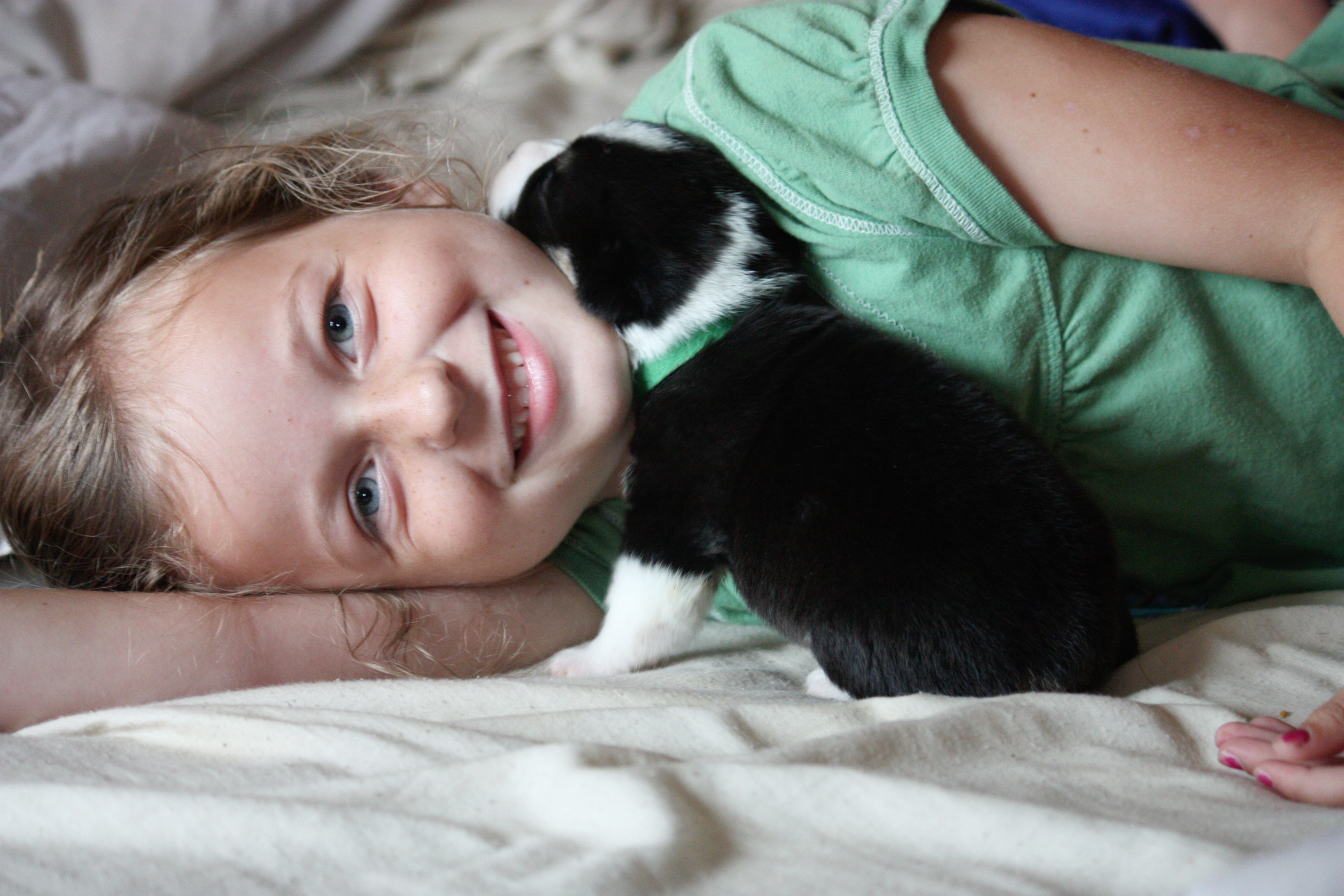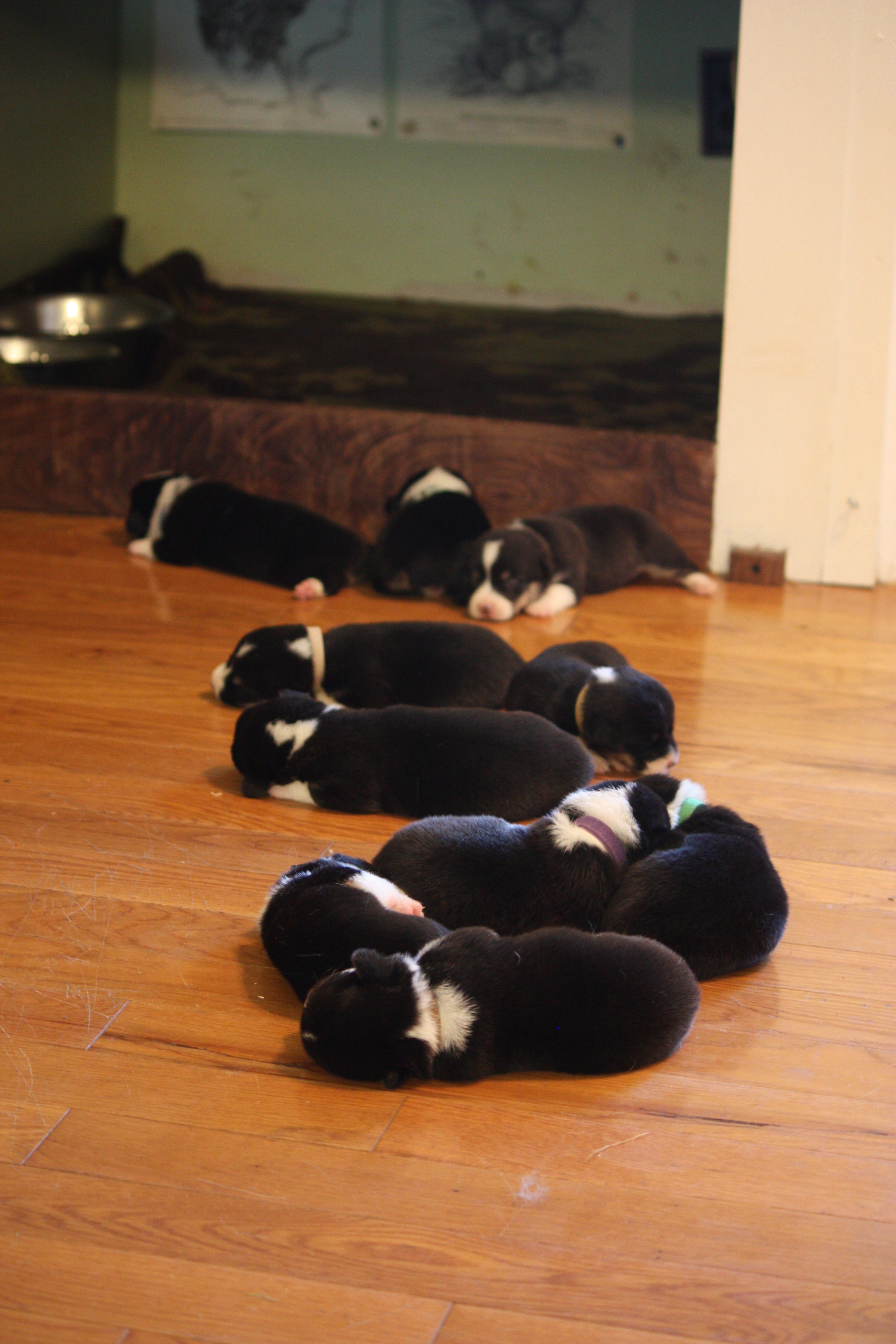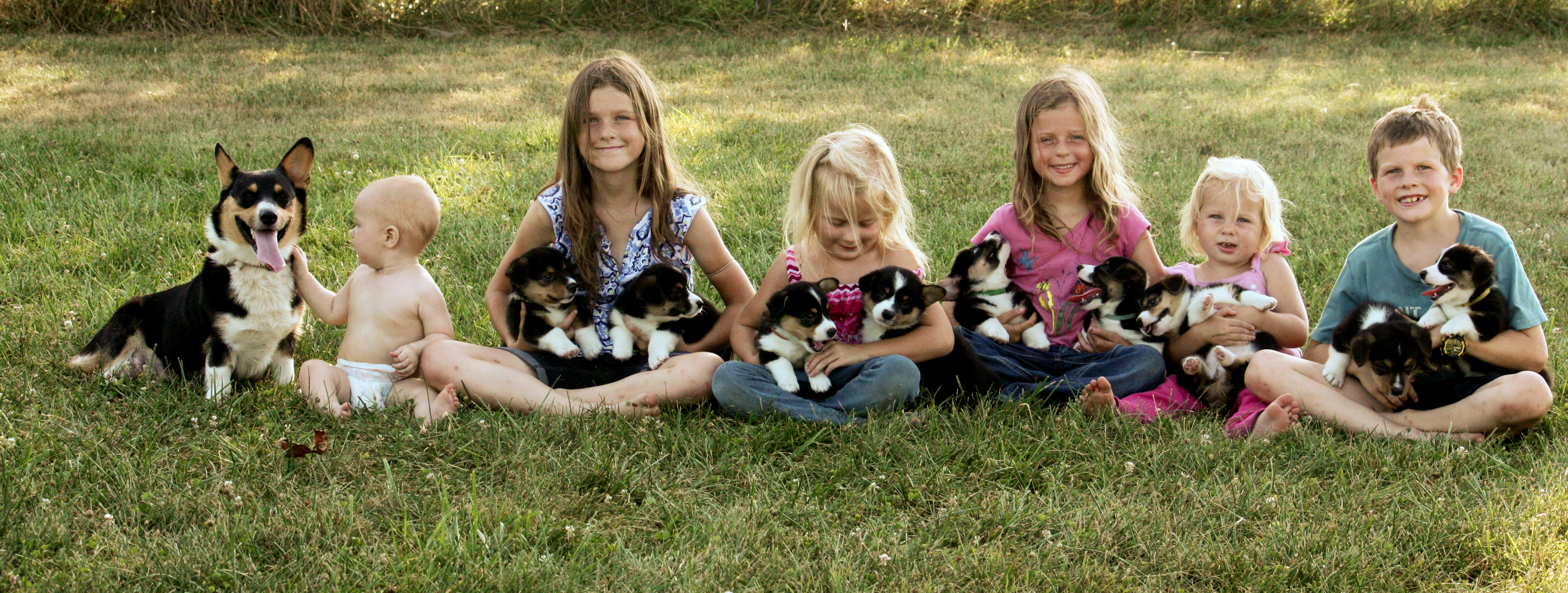 Our six children help us give them love every day and each puppy is used to being handled and held and having nails trimmed. Being in our home they are well accustomed to being around children running and playing, music and all the other noises and activities in a busy household! These puppies love people.